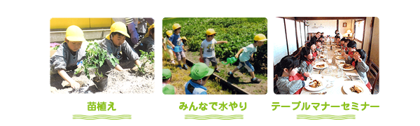「地産地消」にも取り組み新鮮な食材を取り入れています。安心・安全に十分注意して子どもたちがよろこんでたのしく食事が出来るようにと心がけています。